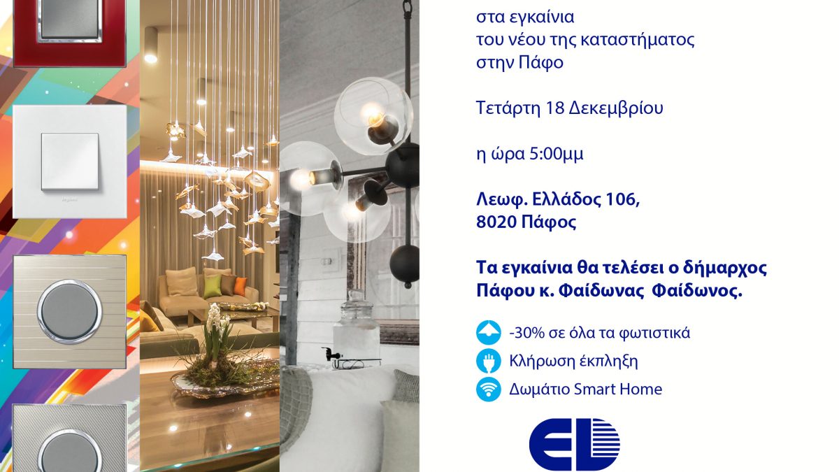 Θα χαρούμε πολύ να σας έχουμε κοντά μας τη Τετάρτη 18/12/2019 στις 5μμ που θα γιορτάσουμε τα εγκαίνια του νέου και αναβαθμισμένου μας καταστήματος στην Πάφο μέσα σε ένα χαρούμενο και γιορτινό περιβάλλον λίγο πριν τις Χριστουγεννιάτικες γιορτές μας!