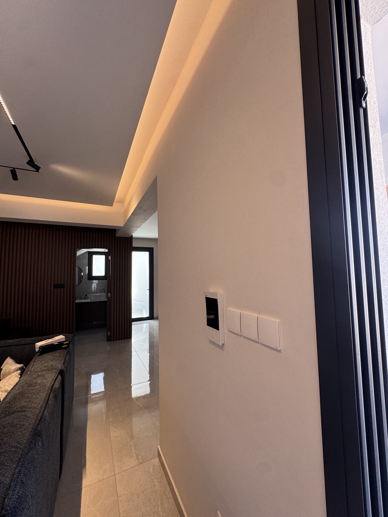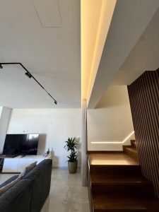 Ένα έξυπνο σπίτι που αναδύει μια αίσθηση αρμονία. Εσωτερικά το σπίτι είναι εξοπλισμένο με τεχνολογία διακοπτικού υλικού Mallia Senses with Netatmo της Legrand. Όπως επίσης και με συστήματα μαγνητικής ράγας. Ένα από τα κύρια στοιχεία του σπιτιού είναι το σύστημα τεχνολογίας της bticino, απελευθέρωση κλειδαριάς πόρτας, έλεγχος φωτισμού σκάλας και ενεργοποίηση του πάνελ εισόδου – τα KIT τα καλύπτουν όλα. Επίσης όλες οι λειτουργίες μπορούν να ενεργοποιηθούν μέσω της Alexa και με την εφαρμογή Home + Security (διαθέσιμη για Android και iOS). @legrandgreece @viokef_lighting @cyfelco @bticinosocial @fumagalli_Lighting